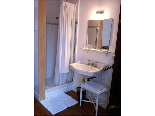 Une douche et un lavabo ne dénotent pas dans la décoration simple et attentionnée.